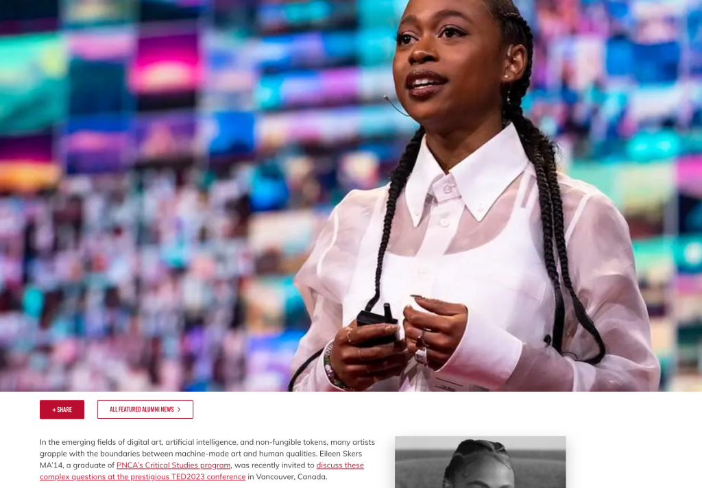 Eileen Isagon Skyers MA’14 speaks about the intersection of art and AI on the TED2023 stage