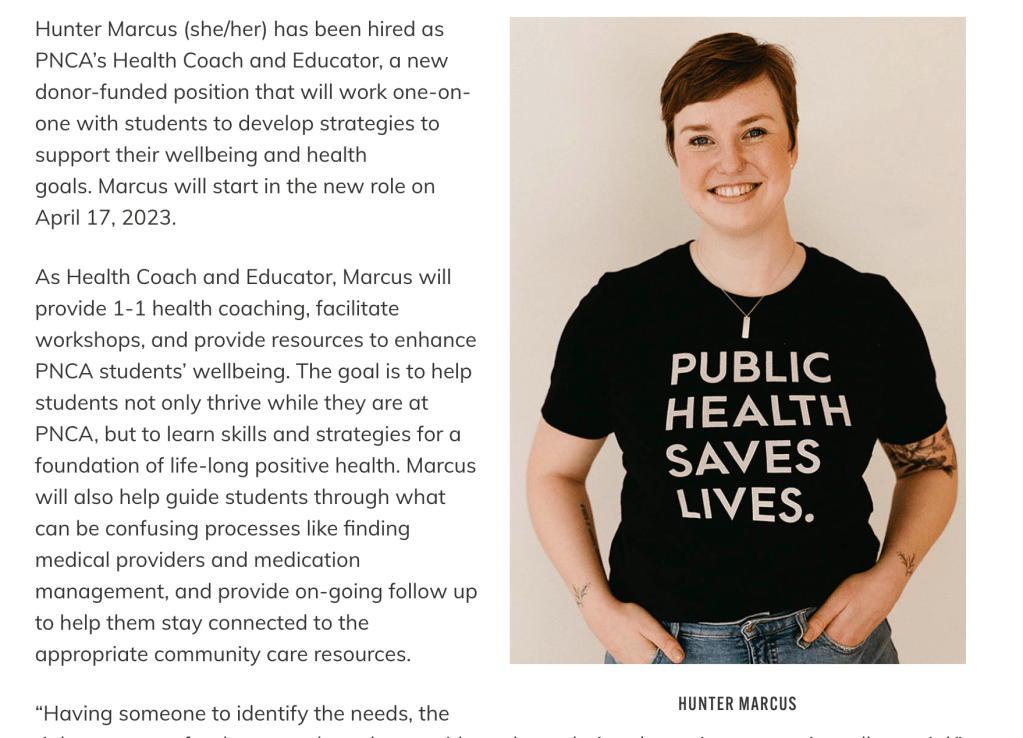 New PNCA health and wellness coach and educator to connect students to resources